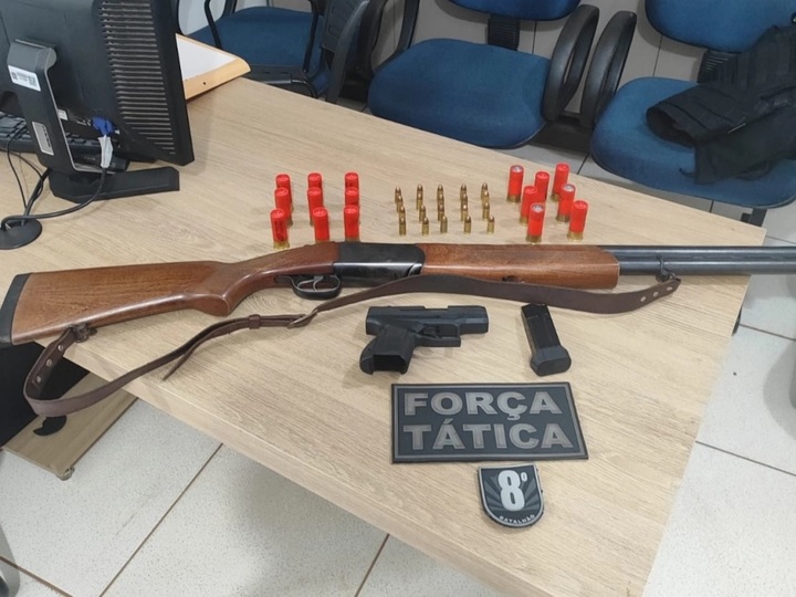 Suspeito foi detido com duas armas e dezenas de munições após denúncia anônima
